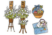 ●お返しの品物は香典の1/2〜1/3が一般的です。